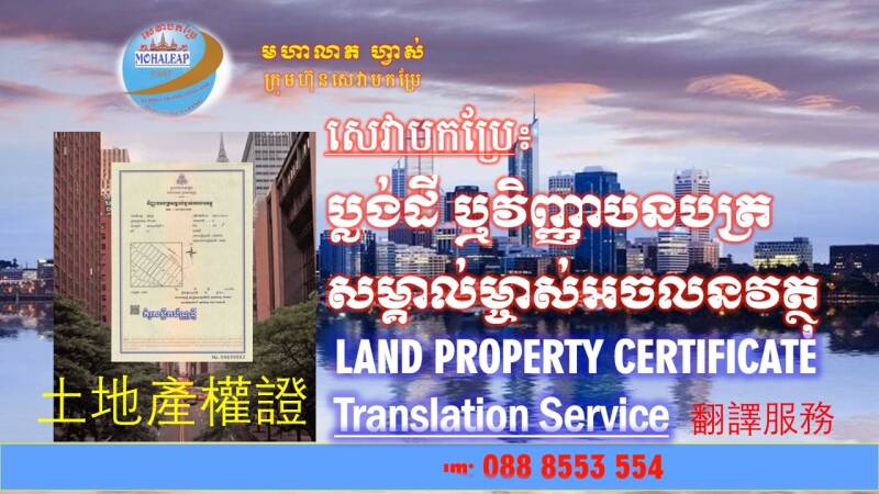 Welcome to ក្រុមហ៊ុនសេវាបកប្រែភាសា មហាលាភ ហ្វាស់ -MOHALEAP FAST TRANSLATION COMOPANY's Translation Services page. We provide accurate, professional, and certified translation services across Cambodia and Southeast Asia. Connect with a wider audience and ensure your message is perfectly understood.